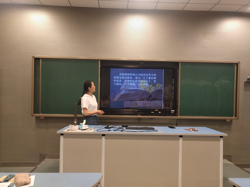 6月28日下午第一节课,低语教研组的全体老师齐聚学校的录播教室,聆听丁筱芹老师《在阅读分享中培养语文能力》的讲座。