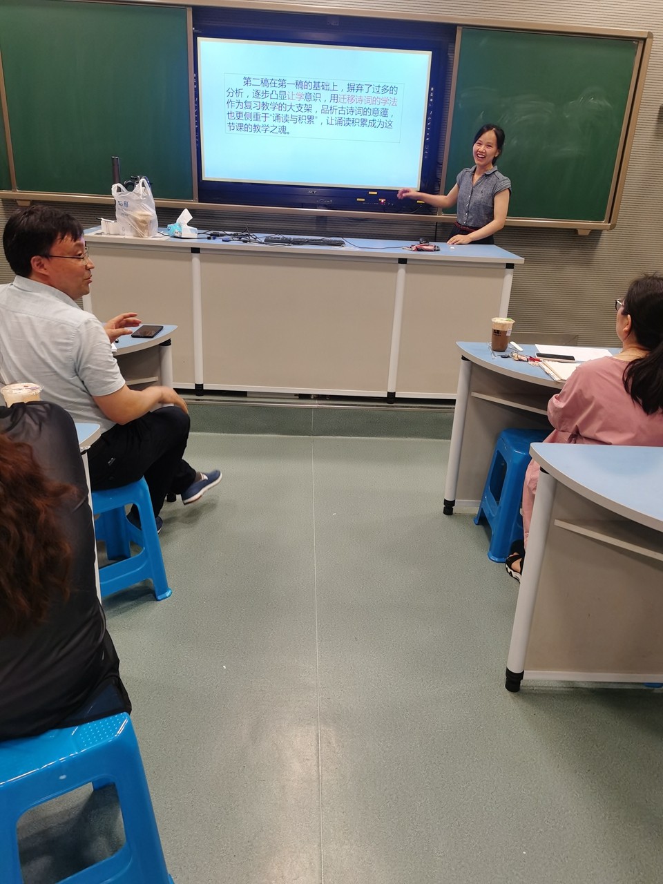 工欲善其事,必先利其器,在这个收获的七月初,老师们又饱餐了一顿精神食粮。对于老师们想爱又不敢爱的复习课,通过这次活动与探究,大家又走近了一步。七月,你好;复习课,你好。