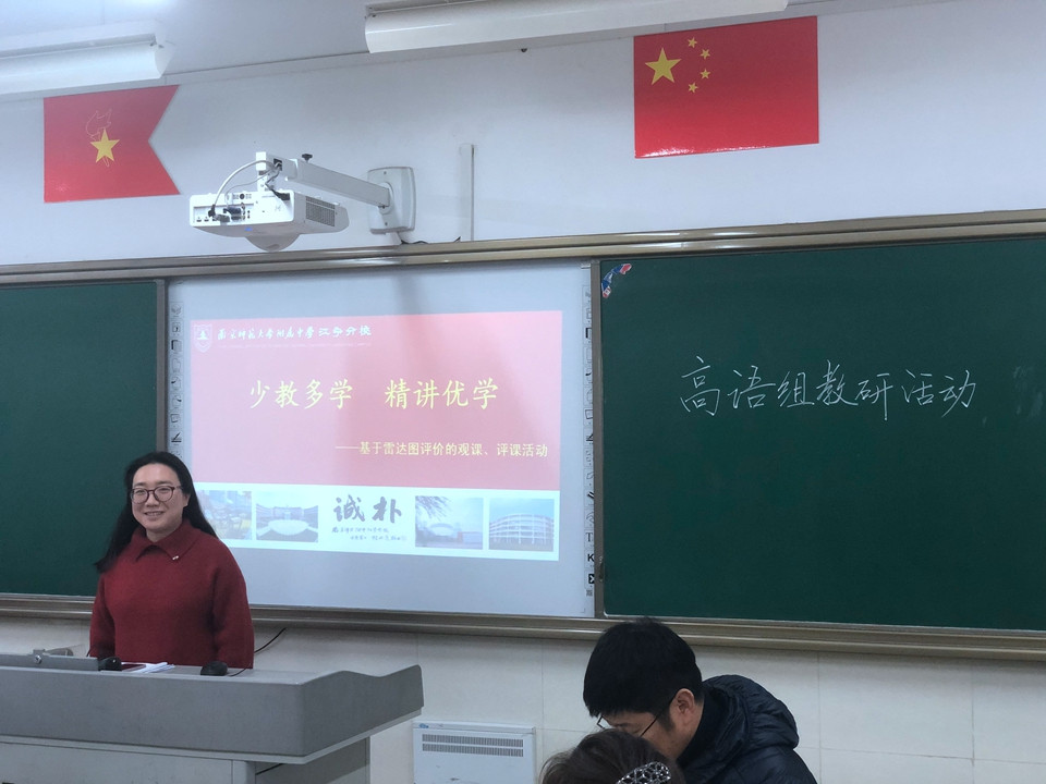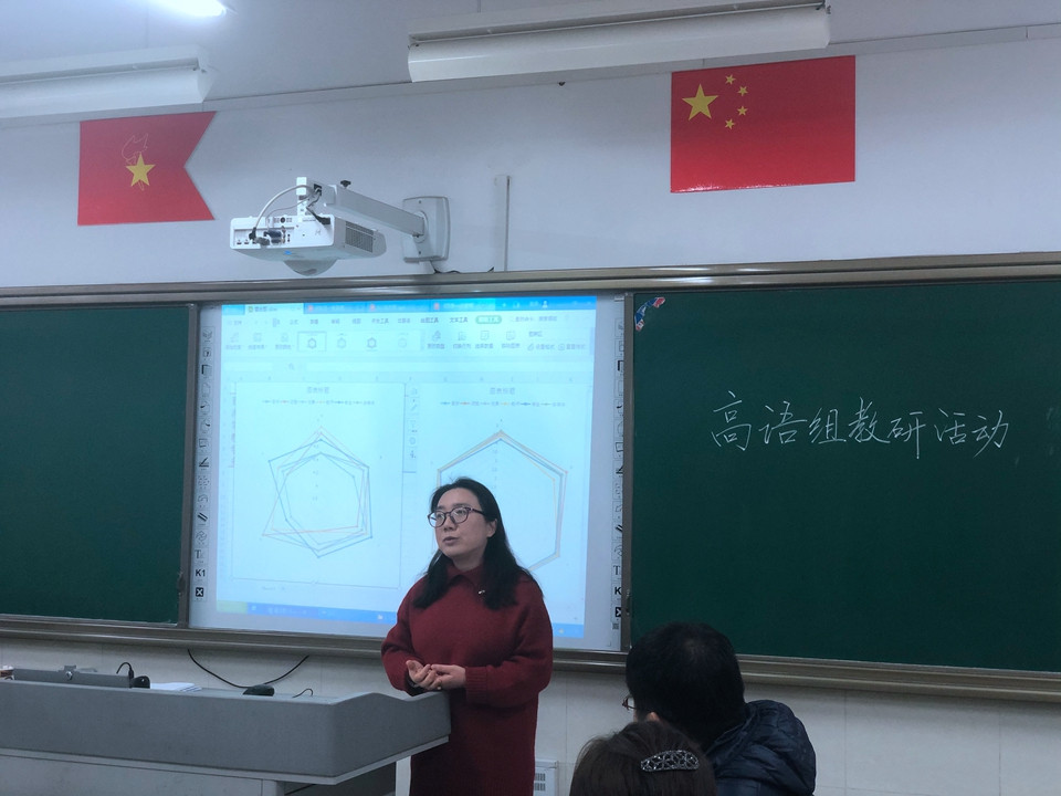 接着,张老师和马老师就自己的课程设计进行说课,小学部高语组老师们则从教学目标、学生反馈、多媒体运用等多个角度进行评课,大家热烈讨论、各抒己见。张媛媛组长根据大家的发言打分,制成了“雷达图”,将评课结果及时呈现。最后,南京市优青、弘景实验小学陈睿副校长对今天的活动进行总结,她充分肯定了两位老师的上课模式和评价语的激励示范作用,还强调了揣摩文本的重要性,这对帮助孩子们学习高年段的语文课文是大有帮助的。