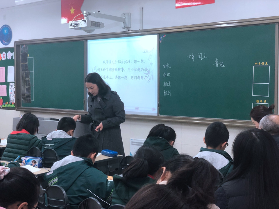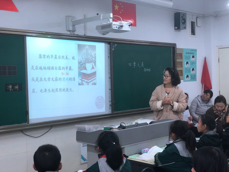 《四季之美》是一篇优美的散文,张婷婷老师在课上带着同学们用不同的方式去亲近文本,一遍遍地品悟美词佳句;孩子们一边读一边想象画面,再将想象的美好画面娓娓道来,课堂中琅琅的读书声,构成了一道美丽的风景。马小微老师则紧扣“新鲜事”和环境、动作等描写,带着学生一起跨越时空,去认识那个聪明机灵的少年,在字里行间感受大师文学的魅力。江宁区多所兄弟学校的老师积极参与,认真倾听,教研氛围非常浓厚。