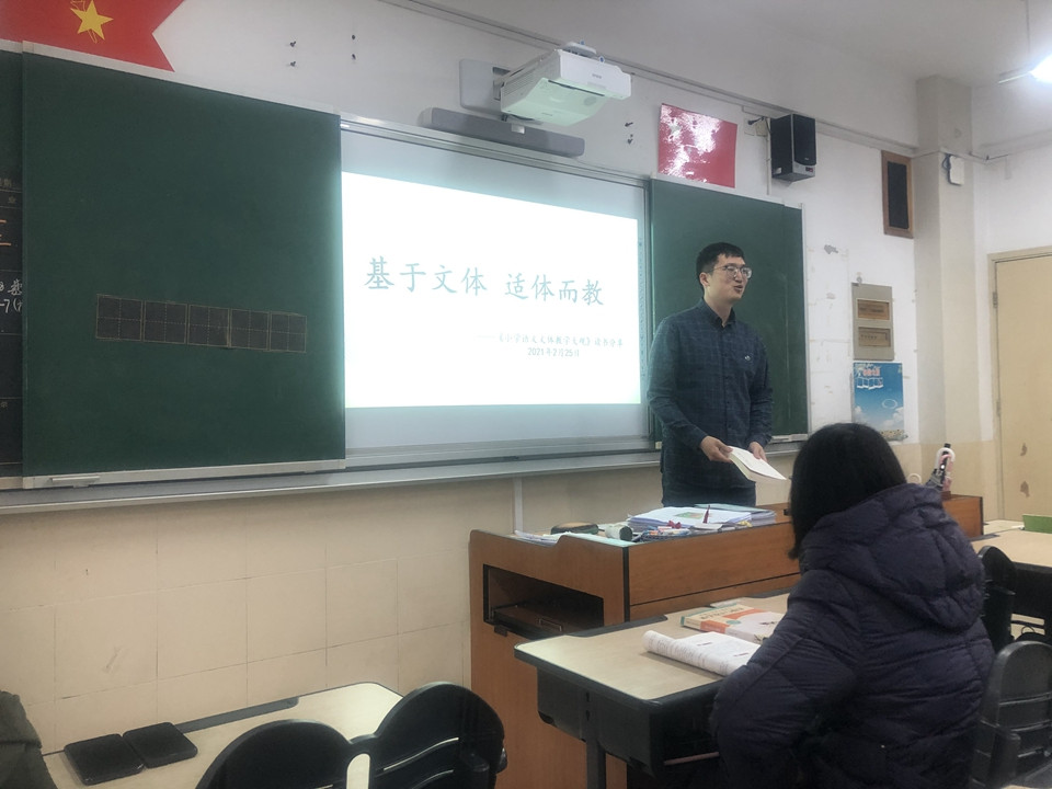 首先韩晨老师向我们推荐了《玫瑰与教育》。韩老师从自身出发,向我们介绍了她是如何通过这本书去解决在班级教育上遇到的问题和困难。李天宇老师向我们推荐了《小学语文文体教学大观》,李老师认为要真正提升语文教学的品质,教师必须具有敏锐的文体意识,必须了解不同文体的一般特征,根据具体的文体定位教学目标、确定教学内容、选择教学方法、切入语用训练,实现教学内容的科学性和独特性。同这样的基础理论结合《盘古开天地》这篇课文进行分析,让我们对此类文章有了更深的理解。紧接着,高昕老师以自己的教学经验向我们分享了《课本里的古诗词》这本书,语言风趣幽默,知识易懂,感觉是进行了一场诗词大会。最后孙栋栋老师推荐了《非暴力沟通》结合自己的班主任工作向我们分享了书中很多值得学习的经典案例。。