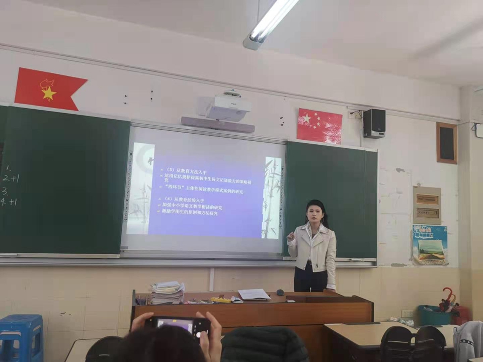 三月二十五日,中语组老师齐聚三二班,进行第五周教学研讨活动。此次教研活动正值区、市个人规划课题申报之际,教研组长镇洁老师特别邀请魏澄老师带来微讲座——《个人课题研究之探》。