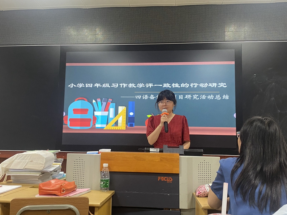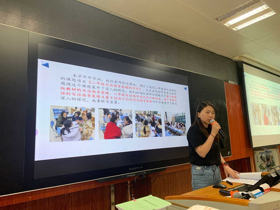当然,老师们在进行项目研究的时候,也有许多值得反思的地方。比如习作教学:对于少数在平时的学习中不注意观察、不注意坚持阅读积累,知识面窄,观察力、理解力、想象力较弱的学生,如何改进方法继续引导。这些都需要教师进一步地提升自己的学习、研究能力,提高自己的各方面的素养,改进教学方法,努力探索,让学生乐于写话、乐于表达。识字教学不仅仅关注字的音形义,还应该适当参透汉字文化,进行语用。