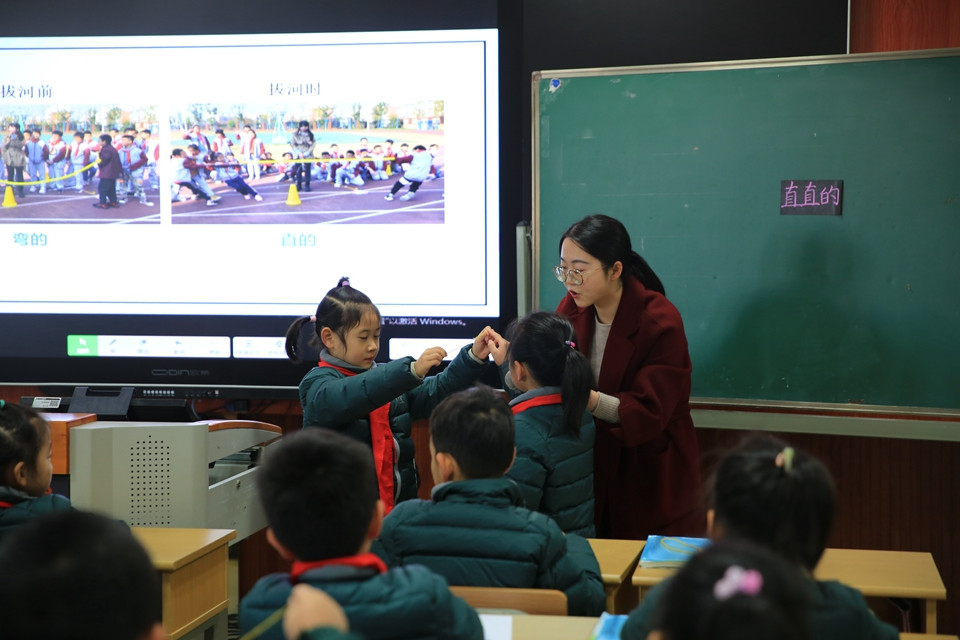 随后溧水实验小学陶玲老师呈现了《认识线段》一课,陶老师的课堂组织有序,教师富有亲和力,和学生交流亲切自然,借助多种手段帮助学生感受到线段的特征,整节课学生参与度高,师生情态好。