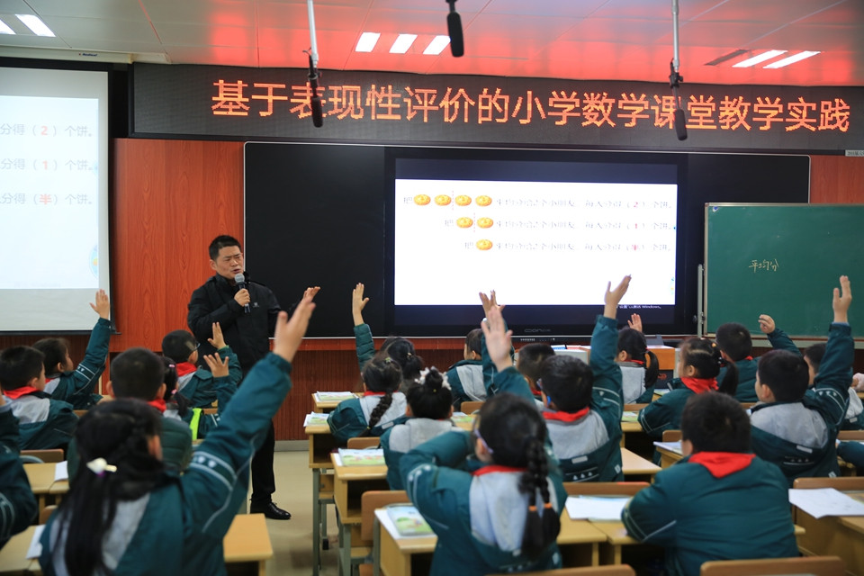2021年11月24日,江宁、溧水、高淳小学数学联片研讨活动在南师附中江宁分校小学部举办。在江宁区教研室戴厚祥主任,溧水区教研室俞冬敏主任,高淳区教师发展中心吴小辉主任,江宁区教研室小学数学教研员周善伟老师和江苏省特级教师朱国军老师的带领下,三区小学数学老师们欢聚一堂,共同研讨,相互学习。本次教研活动的主题是基于表现性评价的小学数学课堂教学实践。