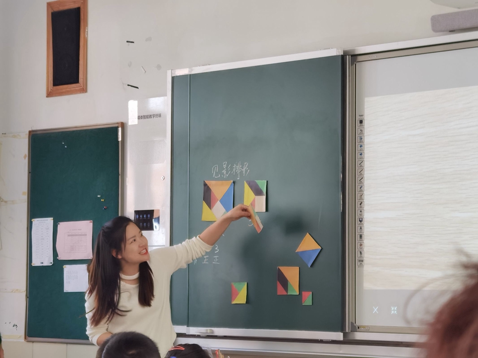 2022年10月10日上午第三节课在二(5)班教室开展了低数组名师工作室的第一次活动,姜巧老师执教《有趣的七巧板》一课。
