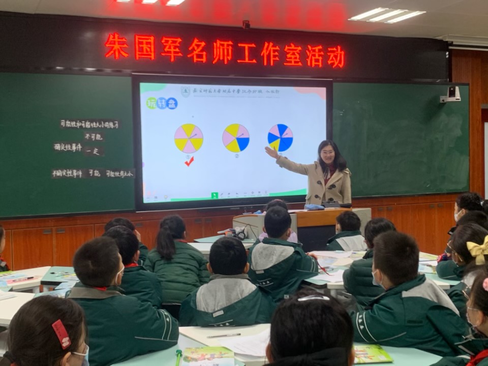 2022年12月12日上午,南师附中江宁分校朱国军名师工作室活动在多功能教室如期开展,全体中高数组数学教师如约而至。本次活动由彭怡老师教师执教《可能性与可能性大小的练习》一课,可能性属于“统计与概率”这一知识领域的“概率”范畴,它是培养学生随机观点理解的重要内容,纵观这节课,课堂教学模式发生了根本性的变化,老师不再是简单的知识传授者,而是一个组织者和引导者,真下调动了学生的学习主动性,成为学习的主人。