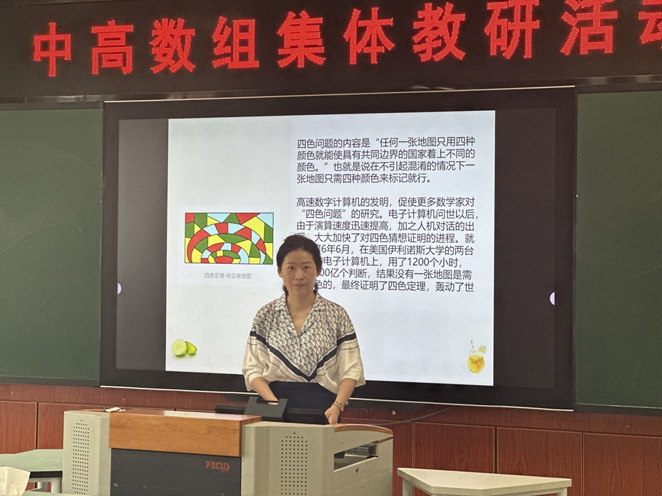 邵楠老师就吉林大学附属中学校长,王显峰老师的《指向学生思维进程的课堂教学设计》讲座,作了分享。邵老师以《新课程标准》为理论基础,解释了王显峰校长的核心理论——“课堂教学实施的进程要与学生的思维进程高度契合”,并结合“正方形到底是不是长方形”、“0是不是2的倍数”等教学中的常见疑难问题,分享了对教师教学语言的科学性、准确性的思考。