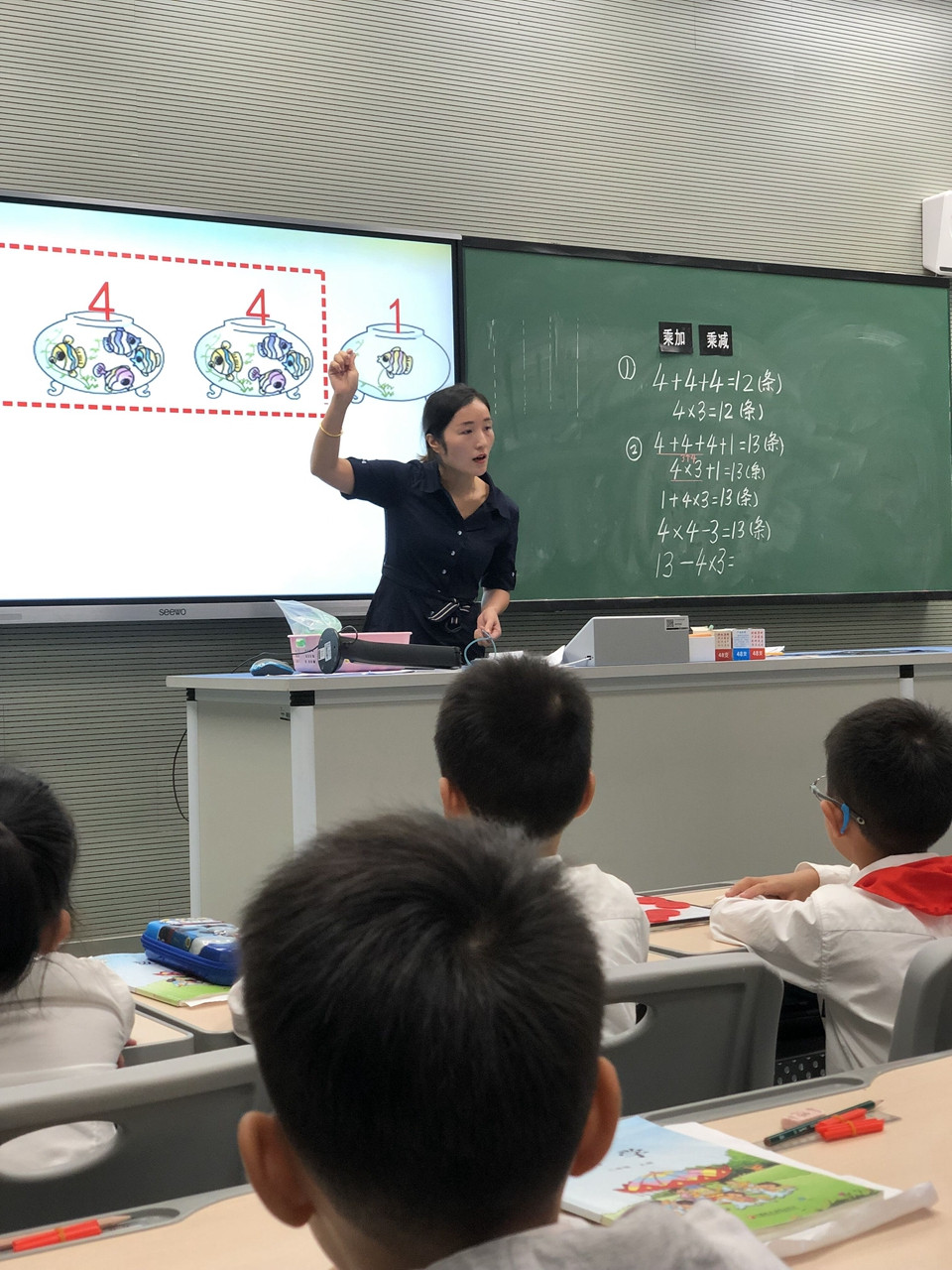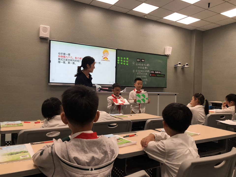 为全面落实“双减”政策,坚持以学生发展为本,落实立德树人根本任务,践行新课程理念,切实提高学生的学习兴趣和实践能力,9月25日早上,阳光和煦,丹桂飘香,我校小学部“数学中低数组名师工作室活动”课堂展示在二(4)班进行,特级教师张素英和中低数组全体老师参加了此次活动。