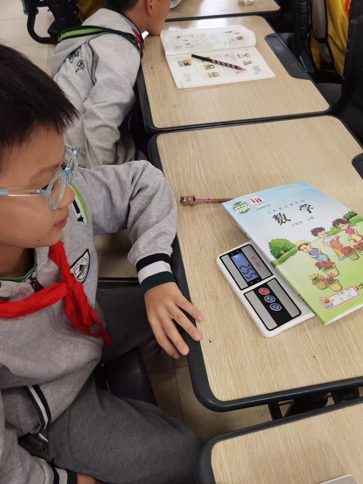 在学习《千克和克》这个单元时,三年级老师充分地给学生提供了“做数学”的机会,让学生积极、主动地去建构知识。学生通过掂一掂、猜一猜、称一称的活动,形成了克与千克的表象认识,然后又充分地去掂量,让学生通过大量的操作:称一称1元硬币、数学书、1千克的食盐、书包等,对千克与克的质量观念越来越清晰,越来越深刻。学生由最初的表象“克很轻”、“1千克有点重”逐步发展到用弹簧秤称物品、估测物品、认识物品的质量,这些生活中的数学不是由教师教的,而是学生自己体验,获得知识,并形成了一定的技能,获得了积极的情感体验。