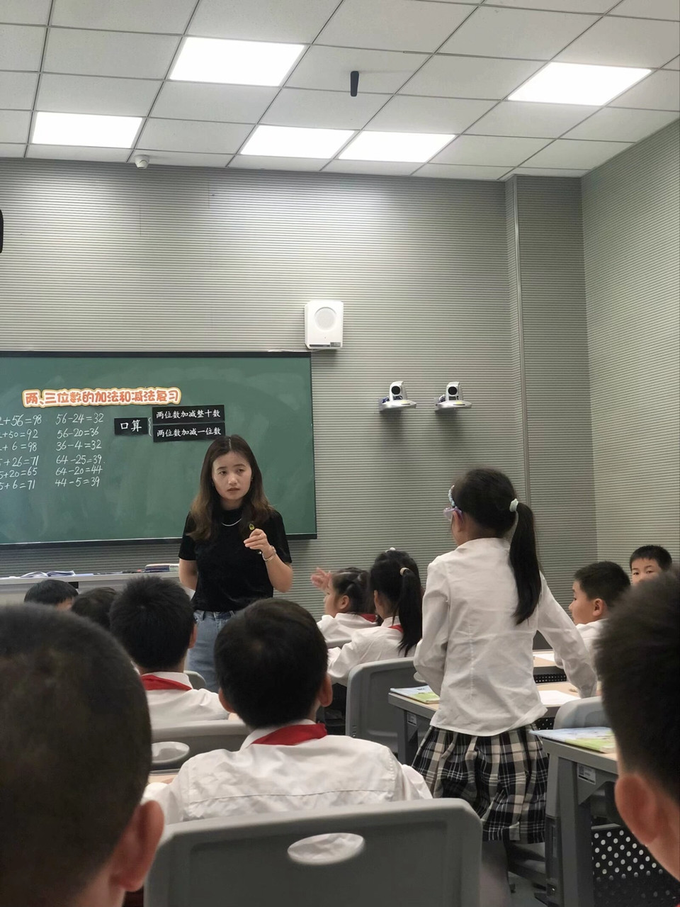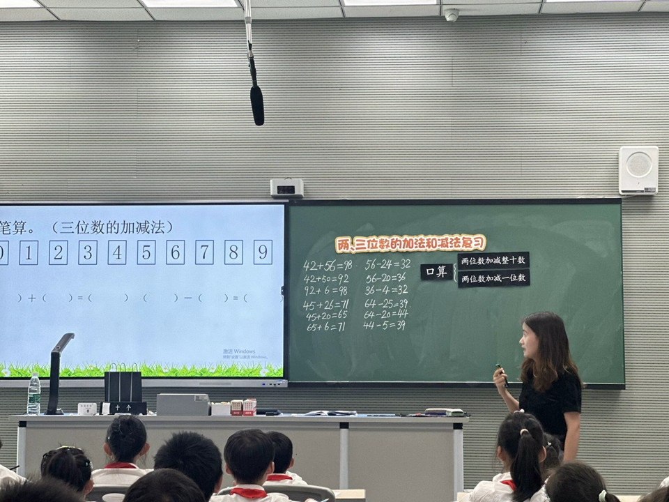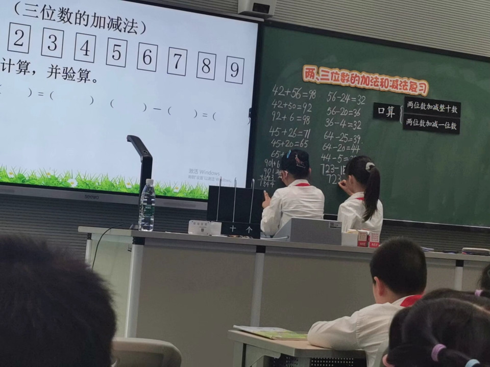 为充分发挥骨干教师的示范引领作用,进一步探索“少教多学 共生课堂”的内涵,提高教育教学质量,2024年5月20日,我组周指毅老师开展教学展示活动——《两、三位数加法和减法复习》。