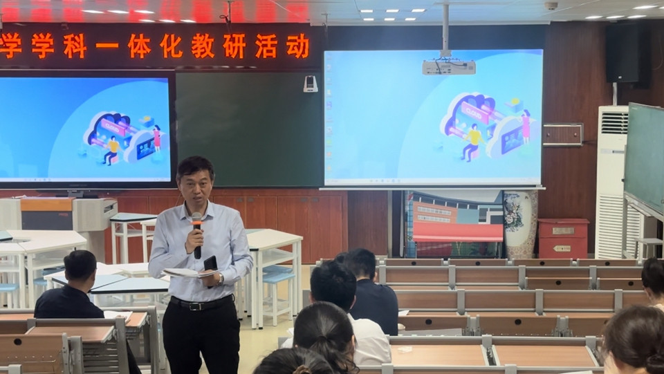 2024年6月11日,我校小学、初中全体数学老师齐聚一堂,开展了由张士民校长所倡导的一体化教研活动。首先由小学部的鲍庆贺老师和初中部郭炜老师为大家带来的两节高质量的展示课;接着在场的各个学部的数学老师进行评课,发表听课感言。张士民校长全程参与了本次教研活动,并对活动进行总结发言。