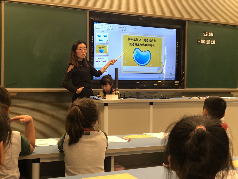 第一节课是赵老师执教《认识周长》。赵老师的课堂灵动而富有活力,展示了扎实的教学基本功。在教学中创设多个教学情境,注重体验,在充分感知的基础上建立表象,认识周长,理解周长的实际意义,逻辑性强,语言严谨。