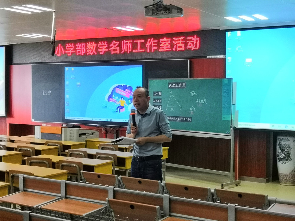 5月13日,我校小学部数学“名师工作室活动”课堂展示在多功能厅举行,江宁区教研室戴厚祥主任前来指导名师工作室活动,朱国军校长和全体数学老师参加了本次活动。