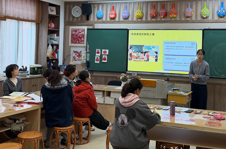 为推动 2022 版小学英语新课标落地,助力核心素养培育。11月4日,小学英语教研组组织开展“思维・共生”课堂实践与新课标融合专题讲座,由荀明霞和刘嘉懿老师主讲,全体高英组英语教师参与。
