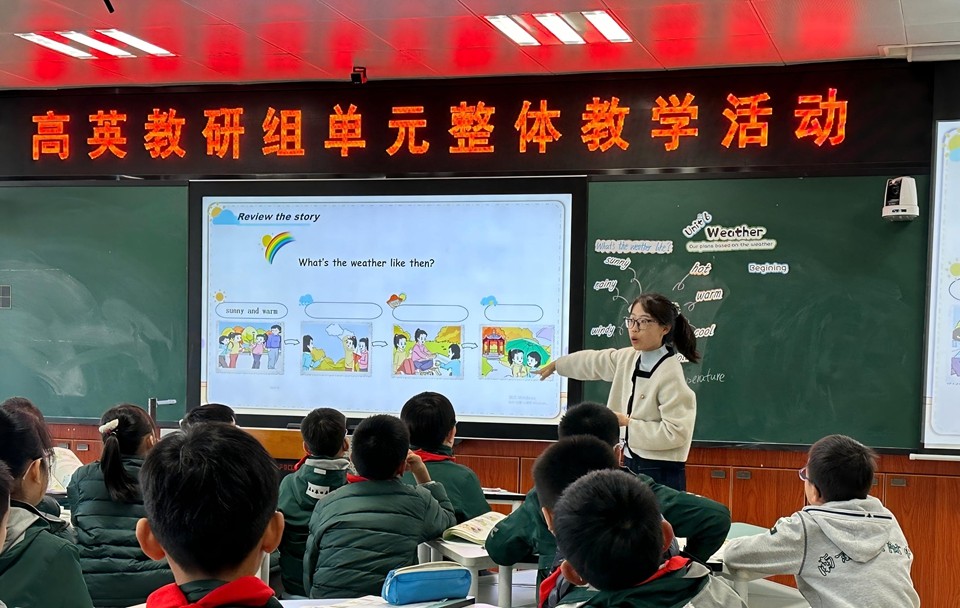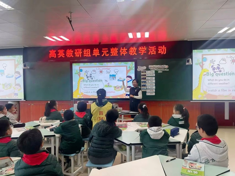 为深化小学英语单元整体教学理念,落实核心素养导向的课堂教学目标,近期我校高年级英语组陈荣华老师,徐璨老师和荀明霞围绕上册Unit 6 Weather主题,开展了为期3课时的单元整体教学实践活动。活动立足学生认知特点,以“感知天气—表达天气—运用天气”为主线,将词汇、句型与生活情境深度融合,让学生在沉浸式体验中提升英语语言运用能力。