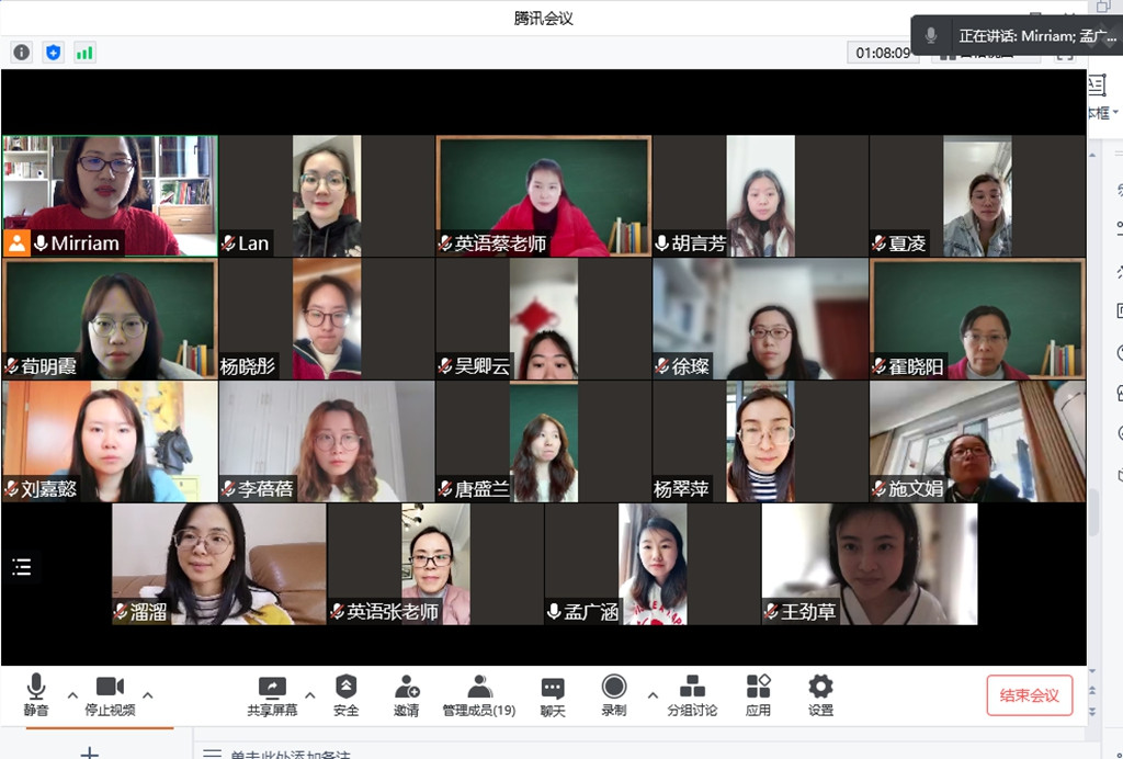 三月中旬,一场突如其来的新冠肺炎疫情打乱了我们正常的教育教学工作计划,上学虽延期,但教研不迟到。为了贯彻学校关于“停课不停研”的要求,小学部低英组全体教师于3月29日上午十一点再次开展线上教研,通过线上研讨,围绕如何优化在线教学,提高教学质量开展,明确下步的教学任务及要求。