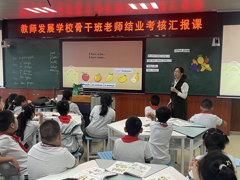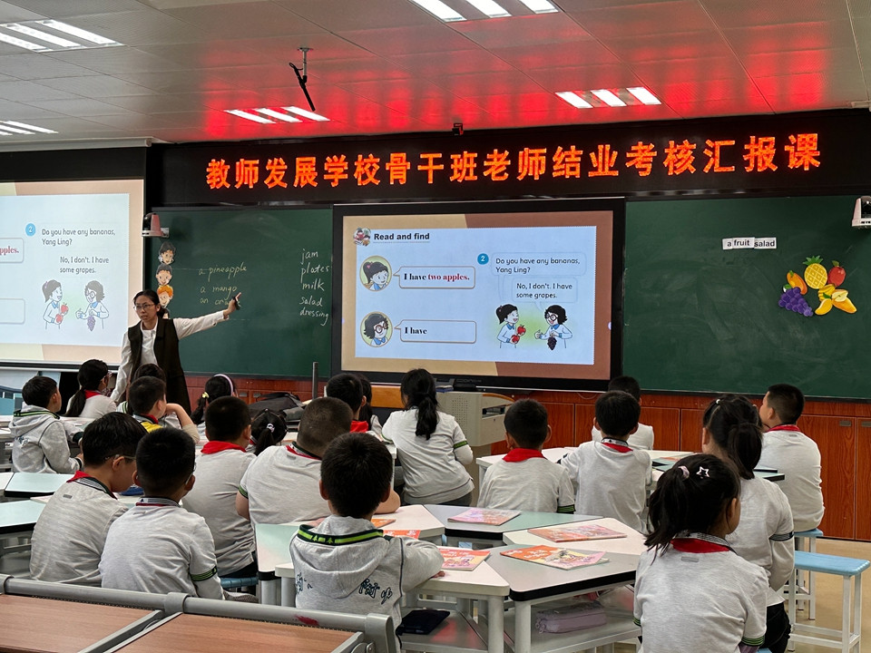 2024年10月8日,小学中高英语组在多功能厅进行了教师发展学校骨干班结业考核汇报课活动。俞静蓓和吕书乐老师分别执教了一节阅读课。