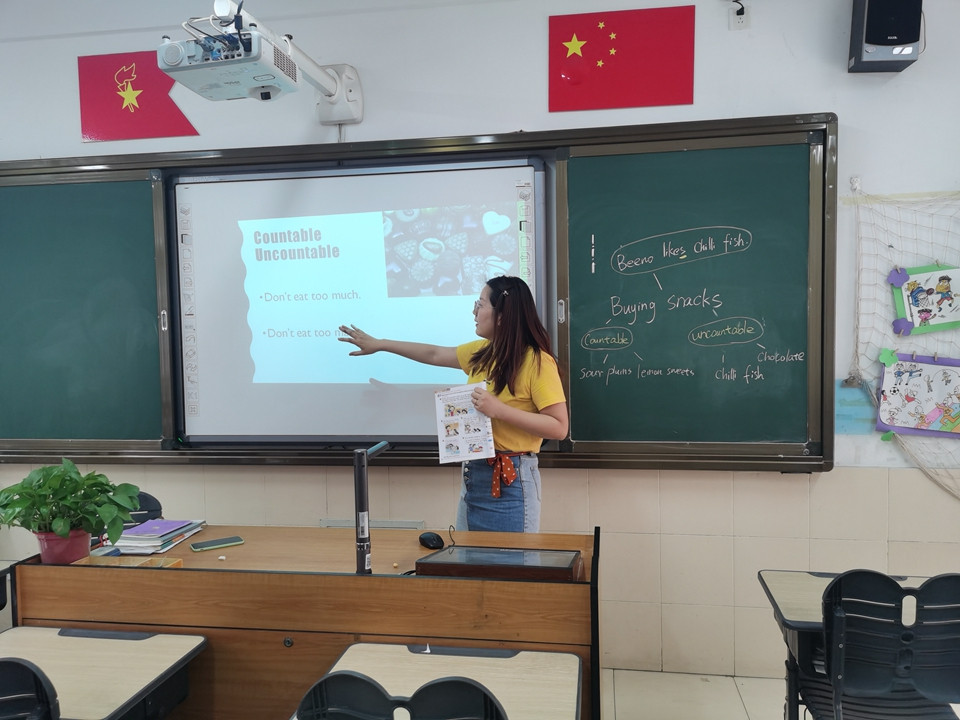 本周四年级英语备课组陈兰老师交流了自己对朗文第一单元的课堂设计和课后反思,备课组其他老师对陈兰老师的教学思路进行了讨论,肯定课堂的亮点,指出不足之处,坦诚交流个人构思。游佳老师指出要用问题串引帮助学生理解文本。王劲草老师指出可以在文章最后用发散性的问题,让孩子进行发散性思维的拓展。