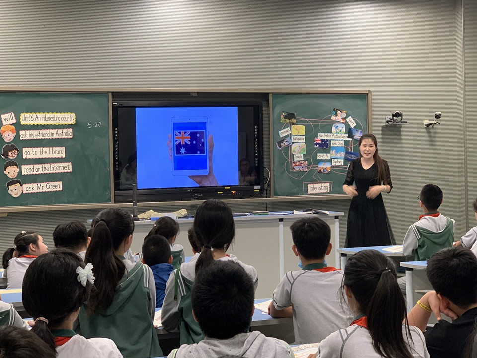 2020年5月20号,英语组蔡月老师在录播教室上了一节“特带优领”公开课,英语组所有老师都参与了听课。蔡月老师从520这个日期引出今天是一个特殊的日子,是向家人,朋友,老师,表达爱的日子。老师说因为爱孩子所以了解孩子,知道孩子喜欢游戏就用游戏的方式引出了今天要学的内容,并由一个硬币自然的引出了课题An interesting country.从了解这个国家的方法和了解到的国家信息两个方面着重分析了课文。对于课文深层次的挖掘得到了听课老师们的一致好评。蔡老师从澳大利亚拥有可爱的动物袋鼠和考拉,令人激动的澳式足球运动,美丽的城市悉尼和热情友好的人们四个方面给学生讲述澳大利亚这个有趣的国家,又拓展了有关澳大利亚的相关事物,与课文内容相辅相成。最后通过拓展想去澳大利亚旅游的一个计划,让孩子模仿说说自己的旅游计划让整节课围绕主题不断深化,整节课很完整,孩子们也非常配合老师,参与积极。小学英语课堂要以学生为主体,蔡老师的这节课充分发挥孩子们的自主性,培养了他们的兴趣,为他们在以后的英语学习当中打下坚实的基础。