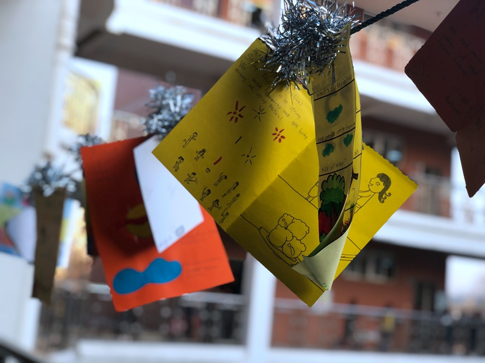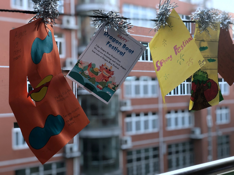 首先,我们联合劳技课进行了英语贺卡的制作比赛,在孩子们的积极参与下,在老师们耐心地指导下, 鼓励学生发挥想象,自制贺卡。学生积极参与,作品紧扣主题,富有创新、设计独特、手写手绘、讲究细节、制作精美,让人眼前为之一亮。为了体现英语学科的特点,贺卡上用英文表达祝福语,上面的每一个字母都寄托着同学们最真挚的祝福和问候。涉及的节日主题有春节、端午节,中秋节,教师节、等,让学生们感受到了文化多姿多彩的魅力。