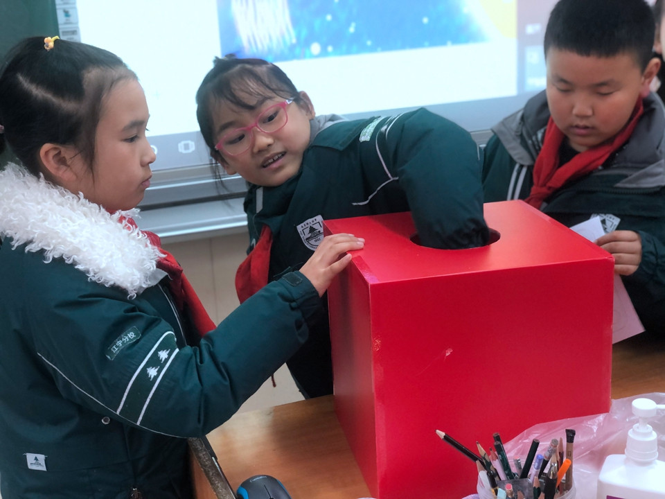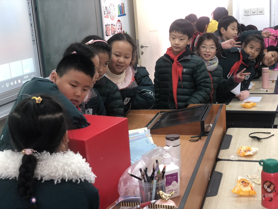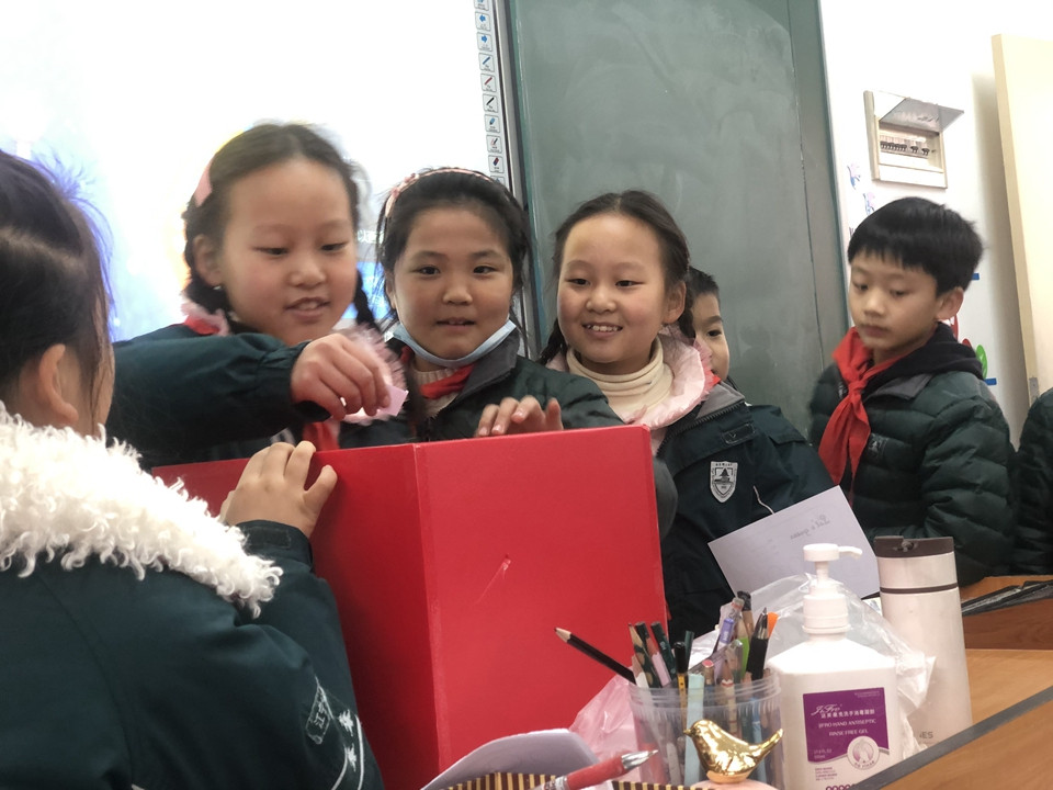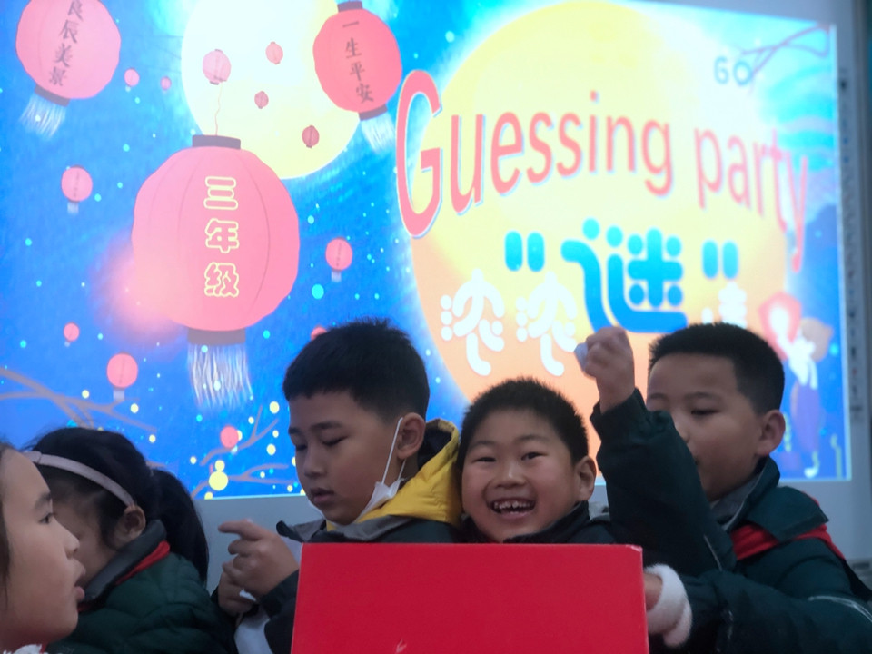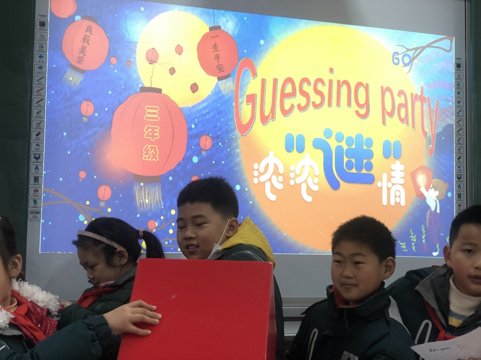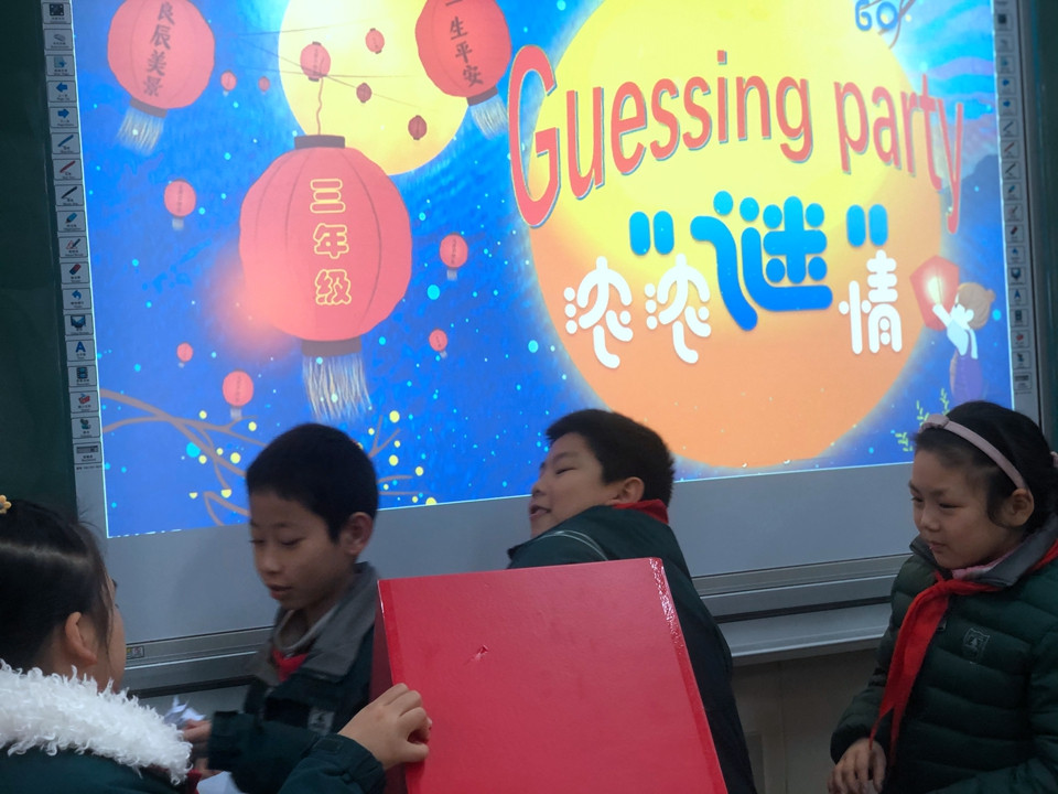 最后迎来的是全年级的英语猜谜活动,各班级的英语老师用精美的卡片制作了谜语,提供给学生们竞猜。谜语内容丰富多彩:有关于animal的,有关于fruit的,有与sports相关的,也有country的系列知识等等各种有趣有用的英语知识。这些谜语卡片放在精心准备的抽奖盒里,学生们在周三午休时间在各班级门口有序排队,认真地在头脑中搜寻各种英语知识来解决英语谜语。有的为猜出谜语而欣喜若狂,有的为谜底而冥思苦想,有的为一个谜语而争得面红耳赤,还有的为迟了一步而望洋兴叹。