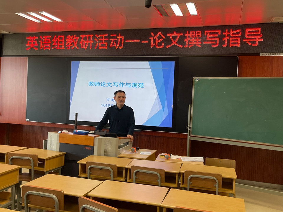 罗校长高度肯定了英语组一如既往地教科研热情,也向老师们强调了教科研的重要性。他指出:老师们要善于钻研、思考教学,且教且思,撰写论文,通过论文理性地思考教学,琢磨出教育教学方法。这场讲座从以下几个方面展开:论文写作存在的问题、论文选题的角度、论文的构成与规范等等。罗校长也列举了很多案例,深入浅出地指导老师们如何写论文,还针对教学经验类文章提出了3种撰写模式:并列式、阶梯式、混合式。讲座全程,老师们认真聆听、仔细记笔记。