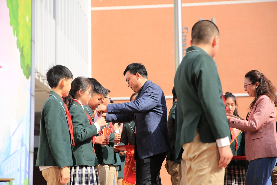 此次选拔活动还设置了特色活动环节。在赛前,老师邀请了之前编程经验丰富的孩子来为同学们分享编程技巧和学习经验,并通过宣传海报在校内进行宣传招募。选拔结束后,在学校升旗时举行了颁奖典礼,由小学部朱国军校长、何明涛副校长、张建忠副校长为获奖学生颁奖,获奖学生们备受鼓舞。