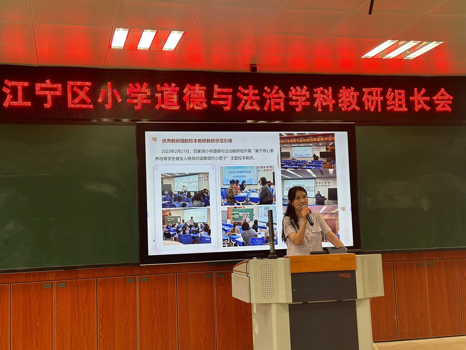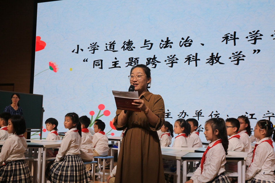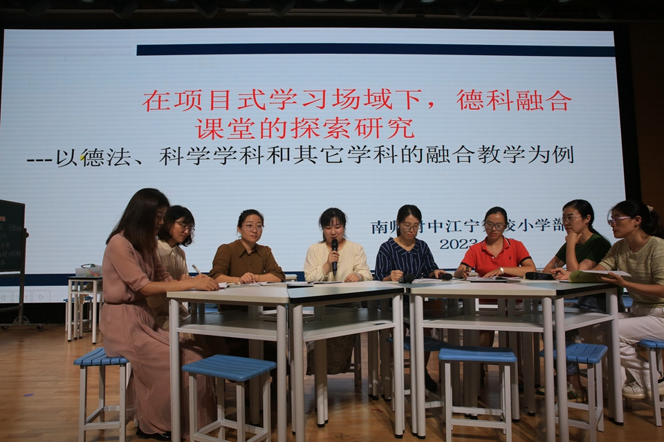 2023年9月19日下午,南师附中江宁分校小学部在多功能厅举办了道德与法治和科学学科融合教学的校本教研展示活动,全区德法、科学学科教研组长、来自内蒙古的客人老师们和区教研员刘德云老师及方峥嵘老师出席本次活动。活动由南师附中江宁分校道法教研组长王辉老师主持。