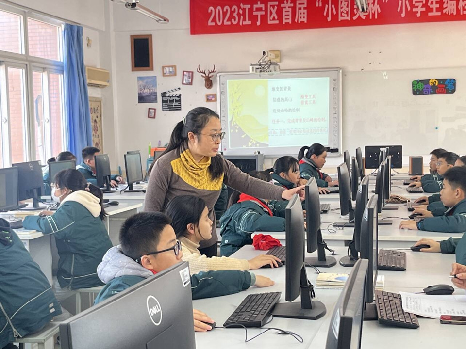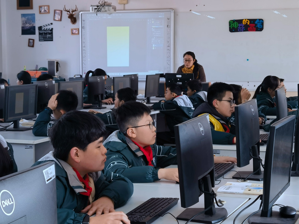 2023年12月5日星期二上午第二节课,全体科技老师在B4楼计算机教室4开展教研组活动。段婵媛老师开设了一节教研组公开课,主题为《神奇的画笔》。在本节课的内容设计上,段老师先让学生从美术的角度出发观察图片,并说出自己的绘画想法。然后再将想法付诸于工具中,运用Photoshop软件的高效、便捷之处完成整幅作品的创作。