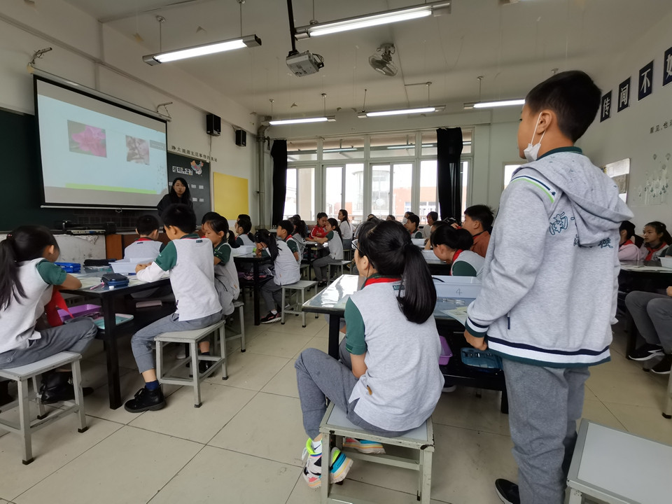 5月26日上午第一节课,科技组全体老师齐聚科学教室11开展集体教研活动。本次教研由王圆圆老师带来一节三年级科学课《植物开花了》,结合学生的课外种植活动,引导学生观察植物、热爱生命。