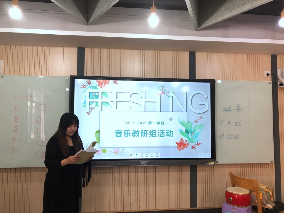 今天是音乐组第八周音乐组教研活动,教研组长厉琳煜老师主持开展。音乐组赛课在上周已全部结束,厉老师针对此次赛课做总结:本学期的赛课情况来看,音乐组整体上课质量比以往有所提高,看得出每位老师都是认真准备,精心设计。这次与以往不同是加入了智慧课堂满分5分,最后成绩是综合上课评分表加上智慧课堂的分数,赛课比赛成绩将会在统计之后公布。