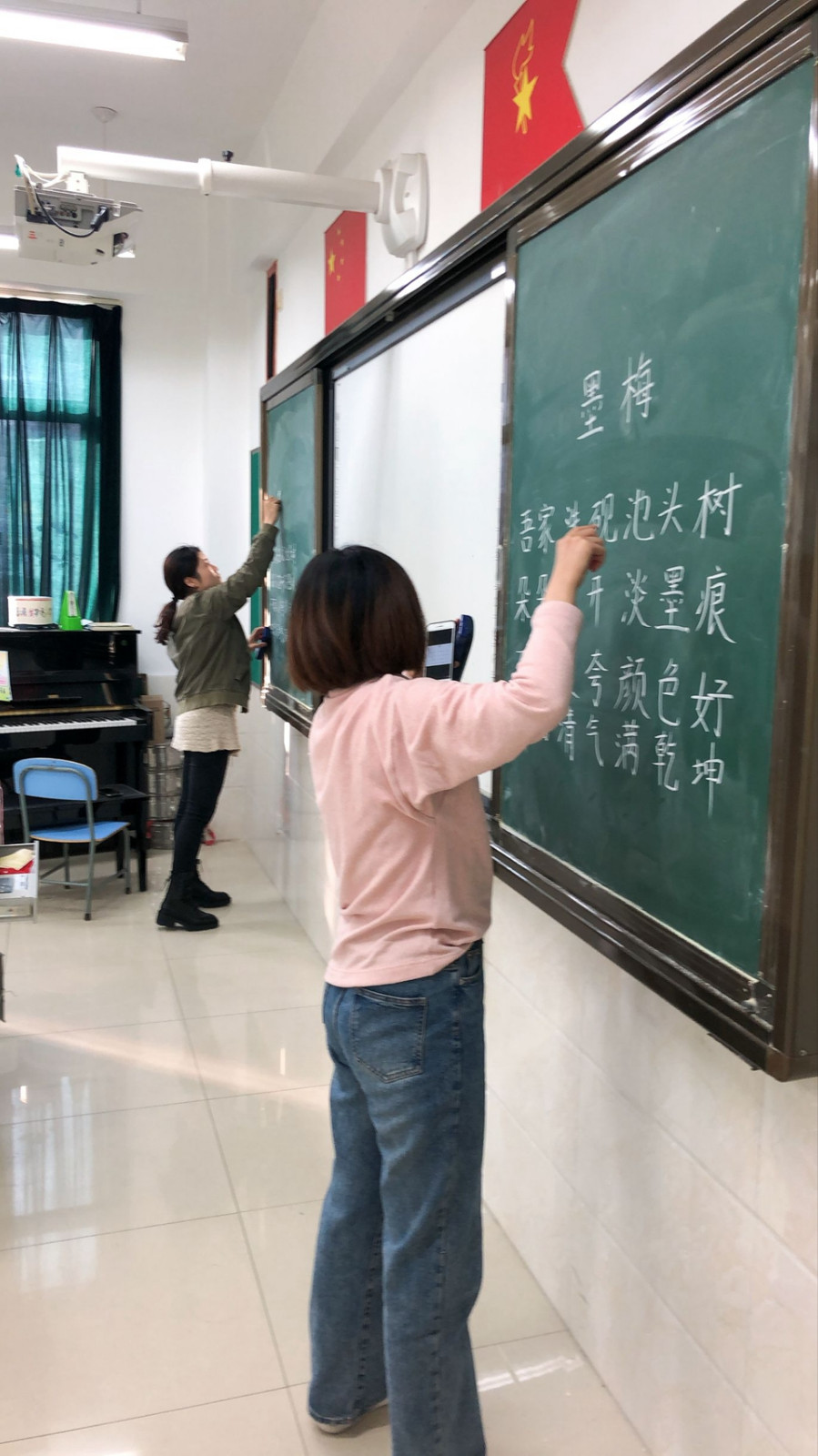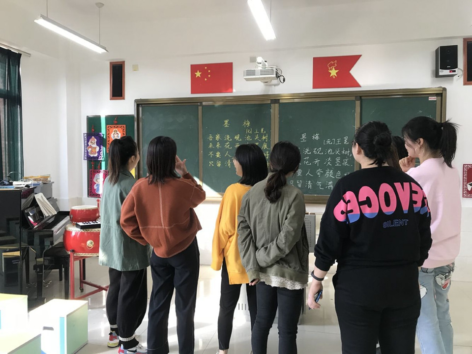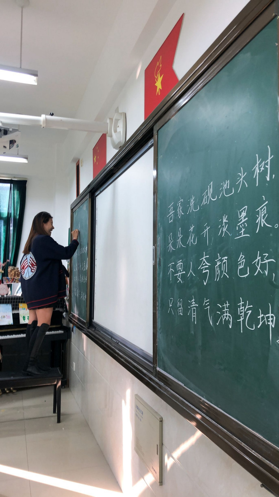周二又到了音乐组的集体教研的时间,今天音乐组全体老师进行了基本功大赛的其中一项——书写粉笔字。