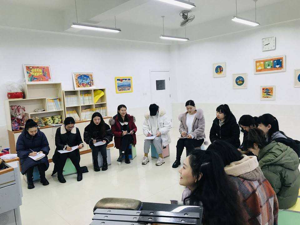 今天音乐组组织了本学期的第二次集体备课,主讲人林丽霜老师给大家带来的是一年级《小小雨点》的歌唱集体备课。本节课的目标是学唱歌曲,能用自然亲切的歌声、活泼可爱的情绪和肢体语言表现歌曲内容。鼓励老师们组织学生能够创造性地进行演唱、表演活动,激发兴趣,探索声音,积极参与音乐表演活动,感受歌曲活泼、热情欢快的情绪。这节集体备课有很多亮点,林老师设计的图谱可以帮助学习理解歌词,掌握歌曲规律。然后在学生理解了歌词、初步会唱的基础上,又设计了角色扮演开展歌唱游戏,既巩固了新学的歌曲,又增加了活动的趣味性。本次集体备课组内老师们积极讨论,集思广益,在浓厚的探讨氛围中完善了本次教学。