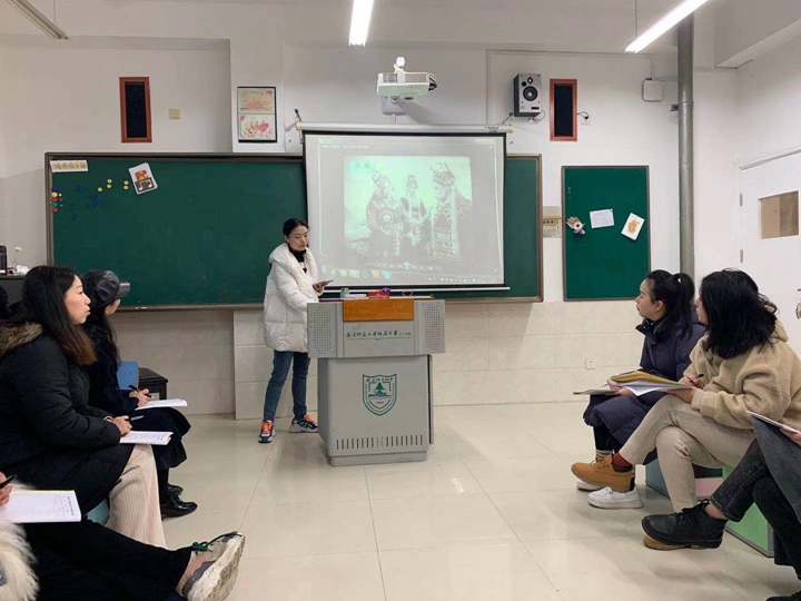 本周为开学第四周,音乐组积极如期开展了集体备课活动,本次集体备课的课题是苏少版五年级下册的豫剧《谁说女子不如男》,由武朦朦老师说课,老师们共同帮助打磨这节课,为武朦朦老师参加片赛课助力。首先,武老师阐述了本课的教材分析,教学目标和教学重难点。通过讨论偶像的话题引出主人公常香玉,接着让学生聆听一小段常香玉演唱的戏曲提问这是什么类型的音乐引出戏曲豫剧,然后介绍豫剧和常香玉的大致情况。此曲是河南豫剧,有很多地方方言,武老师出示了一些重点字词,解决了河南方言演唱的问题。接下来武老师用板胡作为伴奏,教唱旋律部分成为教学的重点,最后通过老师和学生的角色扮演让学生更有身临其境的感觉。在拓展部分,教学欣赏了常香玉在国家危难时期,凭一己之力为国家捐献了一架飞机,升华了本课主题。这节课难度大,知识点多,不建议太多环节,要着重让学生深入体验,感受戏曲之美。