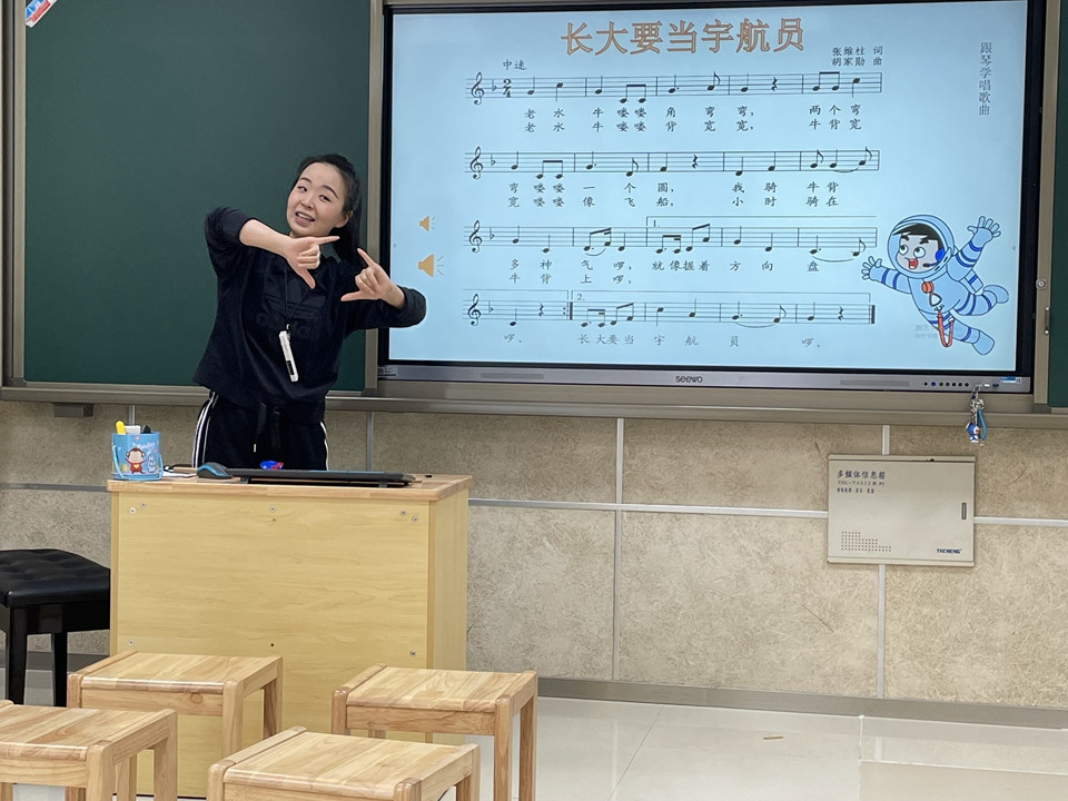 为体现比赛的公平公正,本次比赛的顺序由参赛选手线上抽签决定,比赛通过在10分钟内向评委进行无生模拟课堂的形式展示。虽然是无生上课,但老师们或循循善诱,或用乐器激趣启发,或表演示范,亲切自然的教态、富有感染力的语言,展现了青年教师们的风采。