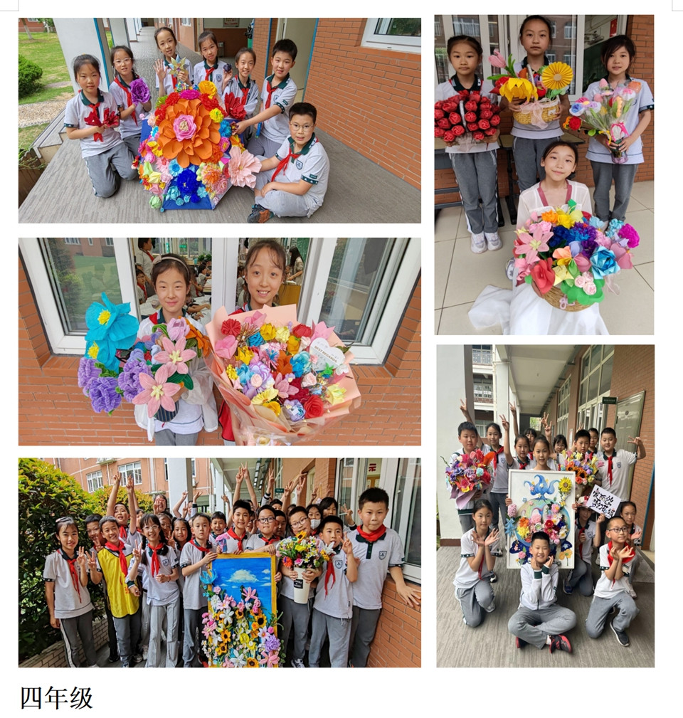 第一大项,分年级的美术创作活动。一年级“名画模仿秀”,同学们变身为名画主人公,各显神通,copy名画,充满童趣。学生感受了名画的魅力。二年级“神奇的瓦楞纸”,同学们用瓦楞纸制作了一幅幅有主题的立体画作,培养了动手能力和团队合作能力。三年级“美丽的风筝”,风筝是儿童不可或缺的玩伴,同学们用画笔绘制了五彩缤纷的风筝世界,了解非遗文化,提升了美术素养。四年级“最美花束”,学生用不同材料手工制作花束,美丽的花束,让人心情愉悦。培养学生向着美好的的心境。五年级“奇思妙想”。同学们就地取材,将生活中的“废品”变成一件件有趣的艺术品,美化生活。各个年级精彩亮相,艺术氛围浓厚。