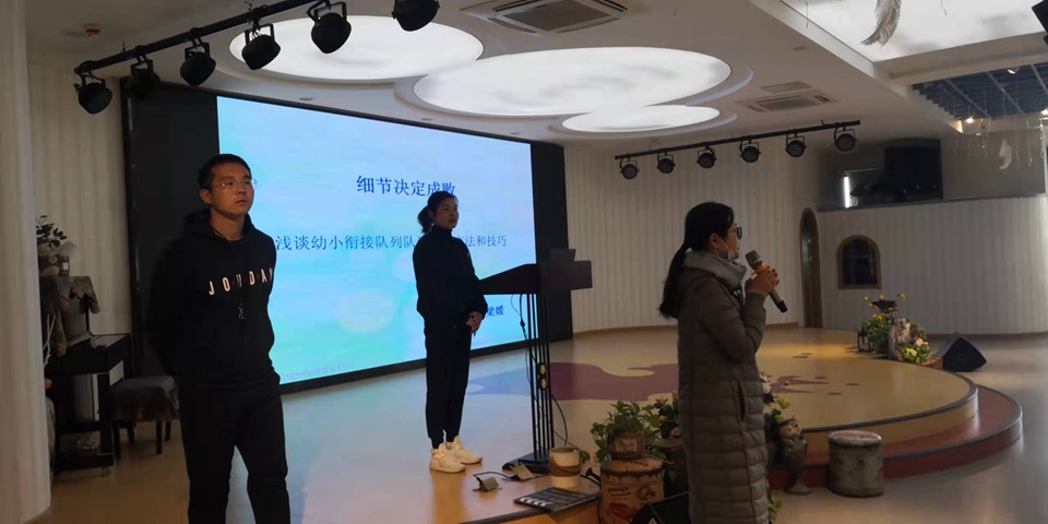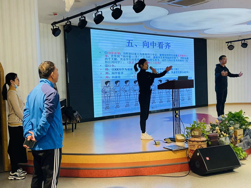 梁媛、马鸿伟和张建亮老师也与九龙湖幼儿园总园及分园的一百多名老师进行了队列队形和口令的专项研讨,研讨贴近幼儿实际,稍息、立正、踏步、队形变化等口令和动作都进行了互动探究,老师们在愉悦、轻松的氛围中完成了幼小视角下的动作及口令衔接任务。