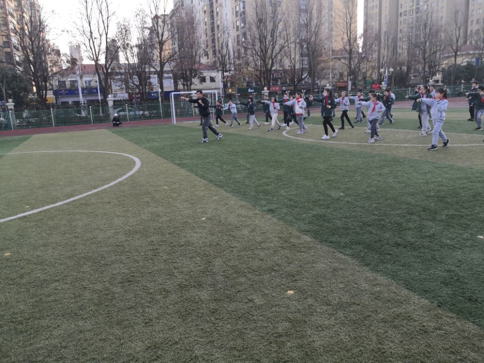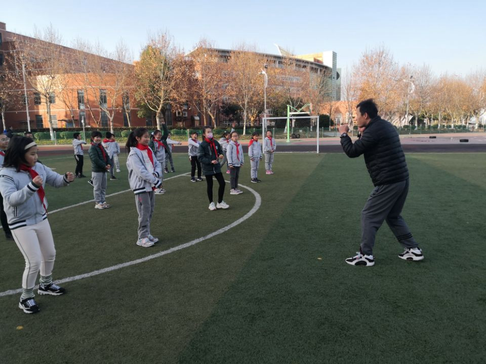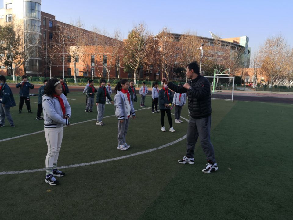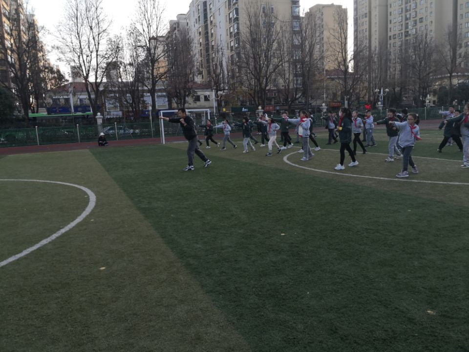 上午第一节课李高尚老师在北操场开设示范课,本次课内容:水平二《武术:组合动作》上课班级:四年级10班。