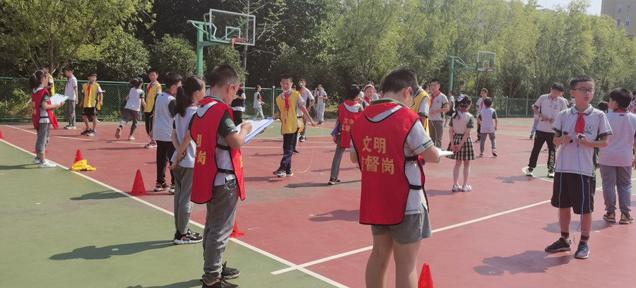 比赛当天,小学部朱国军校长早早来到比赛现场,教务处张建忠主任,二年级王春红主管等领导到现场进行巡视指导,刘云老师组织大队委按照部署迅速找到自己的工作岗位,抽测运动员也代表着班级,勇于拼搏,挑战自我。