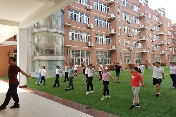 第二环节是刘雯老师低年级投掷内容进行讲解并且用上了上周学习的思维导图进行讲解分析。第三个环节梁老师对每个年级在学习武术上遇到的问题进行探讨与解决。第四环节由李高尚老师带大家进行武术操的学习,同时各位老师反馈各个班级武术操学习进度是每位老师巩固学习武术操,并且对每位老师的动作进行纠正和优化,老师们也能够认真的学习,积极性很高。