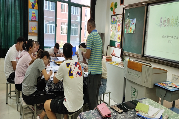 2019年9月17日上午,低年级体育备课组在B6楼美术教室10开展第四次集体备课活动。 先是张建亮老师对本周教研组会议进行传达对课堂常规提出要求,以及向报名师徒结对的老师提出要求:师傅认真指导,徒弟虚心请教,携手共进,教学相长,形成 “传、帮、带”的良好风气。对上一周的体育课情况进行反馈。