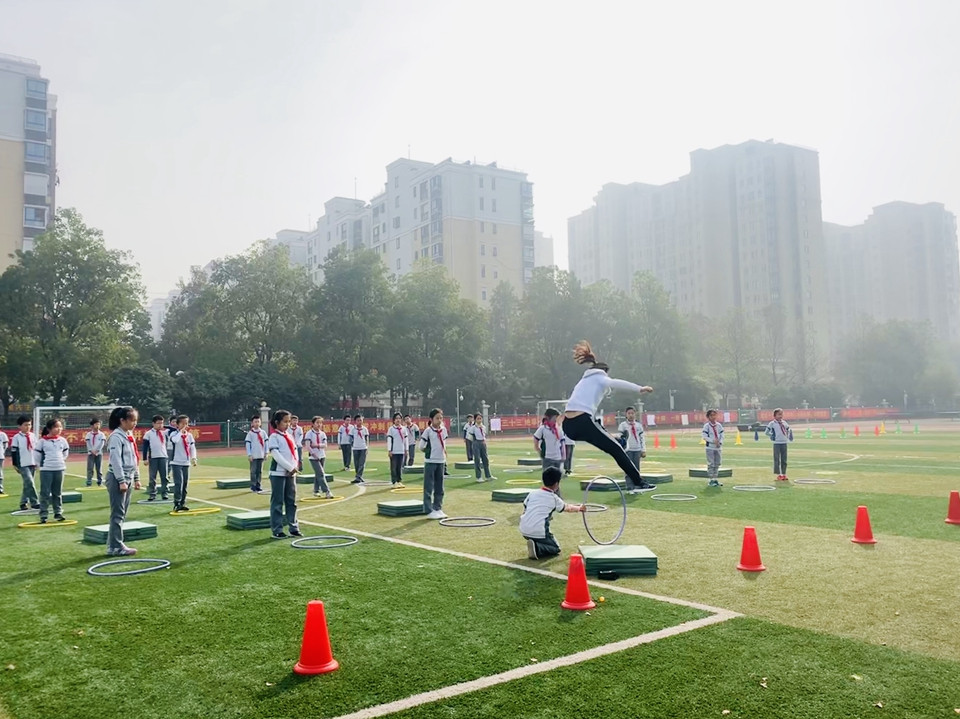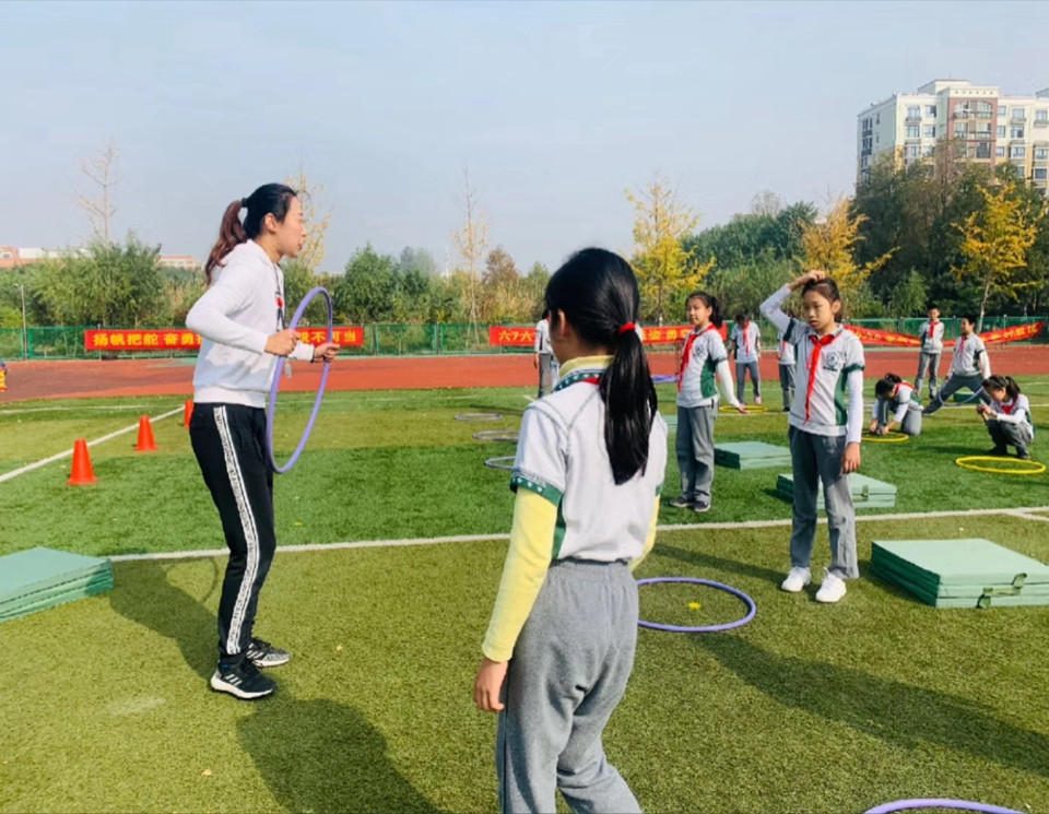 2019年10月23日和28日,江宁区工作三年的体育教师在我校的气膜馆、机房和操场进行了进行基本功及上课的比拼,来自近50所小学60多名体育教师参加了此次比赛,比赛分为规定动作展示、个人技能展现、现场抽题电脑上教学设计和实践课教学,我校的刘雯老师参加了此次比赛,并在比赛中通过跆拳道、轮滑技术和扎实的体育基本功赢得了评委们的一致好评,并在上课环节以其独特而巧妙的场地和器材设计取得了此次比赛的一等奖。