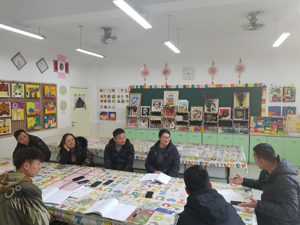 2019年12月13日小学体育高年级备课组齐聚美术教师6进行集体备课。