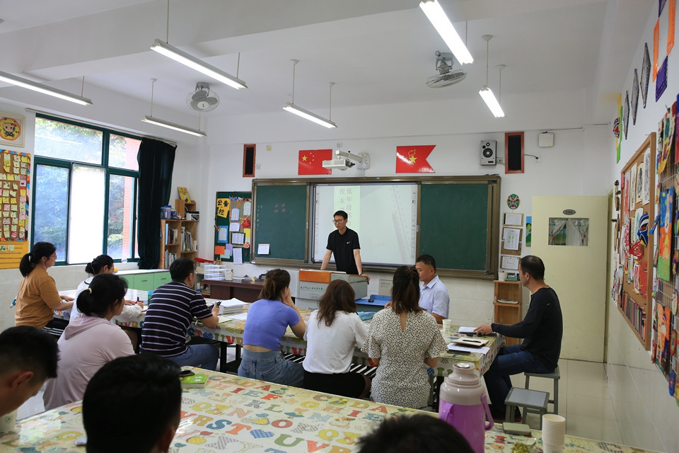 2021年6月28日下午,小学体育教研组21名体育教师齐聚美术教室6,召开2020-2021学年度备课组项目研究汇报。