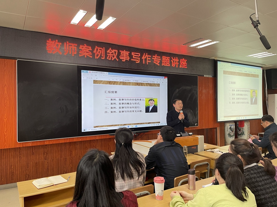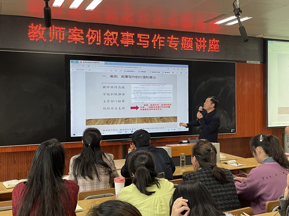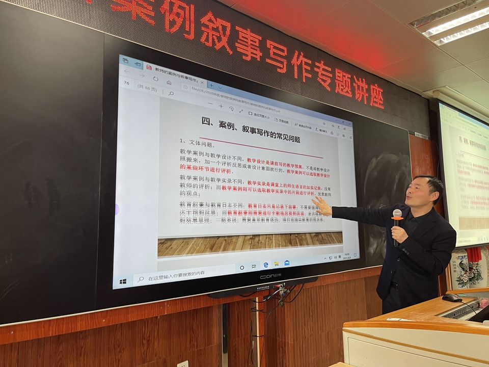 为了让全体老师们更直观地了解写论文和案例的技巧,进一步激发写作兴趣,提高教师论文撰写水平,增强科研积极性,促进教师的专业发展。4月9日下午,小学部组织全体教师开展了论文撰写的专题培训活动。罗刚淮副校长为大家精心准备了教师案例叙事写作专题讲座。