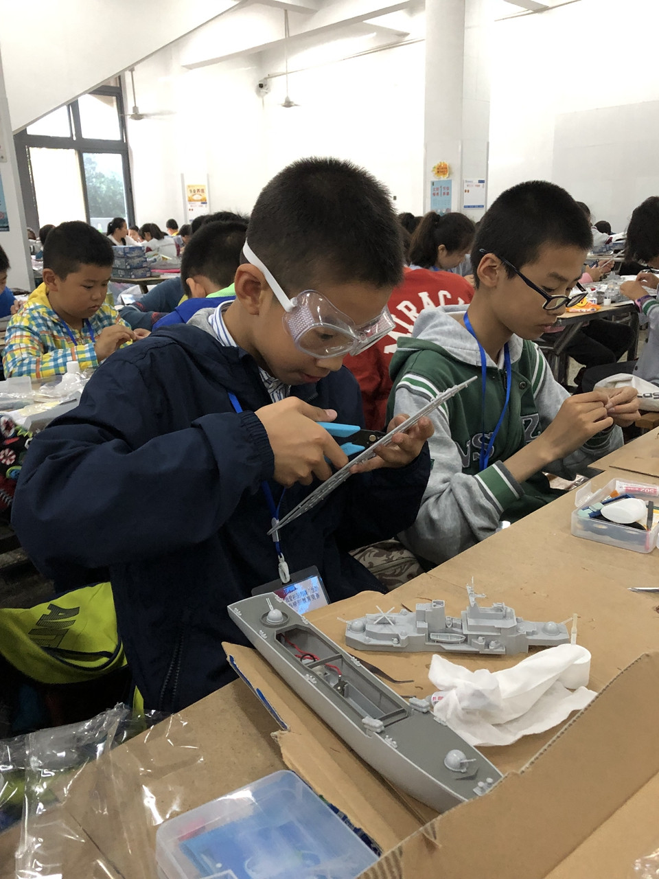 我校代表队参加了此次比赛的5个分项目,分别是海警号、杭州号、强弩号、温州号和梦想号。赛前科学组老师分项目对学生进行了长期而系统的训练。主要内容有熟悉各个模型的结构、练习使用工具和拼装技巧。在备赛过程中,学生自己动手制作航海模型,亲身体验了在玩中学,在学习中探索,在探索中发现的乐趣。