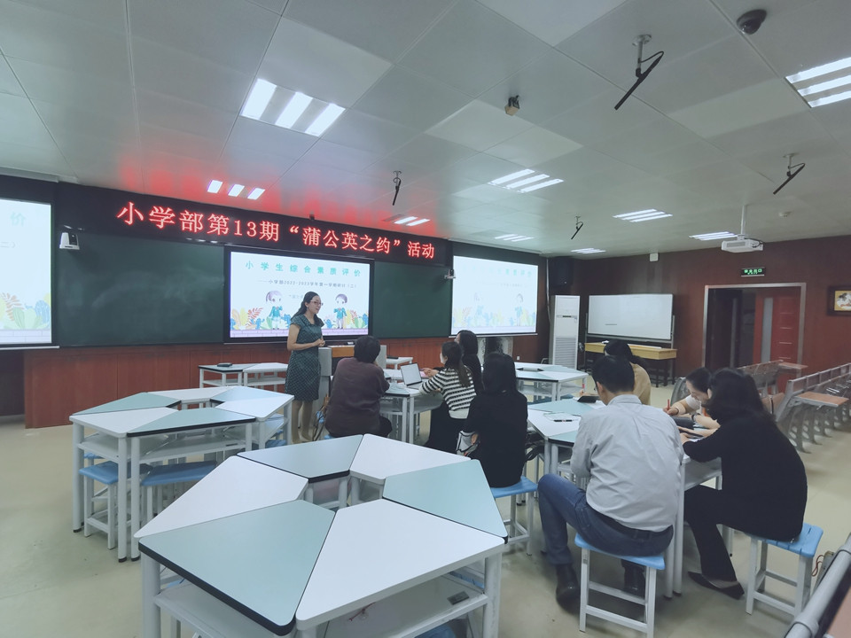 活动第二个环节,何明涛副校长组织蒲公英工作室的骨干班主任就《小学生综合素质评价》(初稿)进行了热烈的研讨。老师们以“五育并举”为基准,集思广益,围绕自己日常工作中的现状和问题对初稿中的各项评定细则进行了修改和完善。这一套具有校本特色的评价体系会成为小学部班主任,尤其是年轻班主任们在带班管理方面的“宝典”。