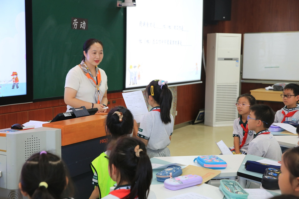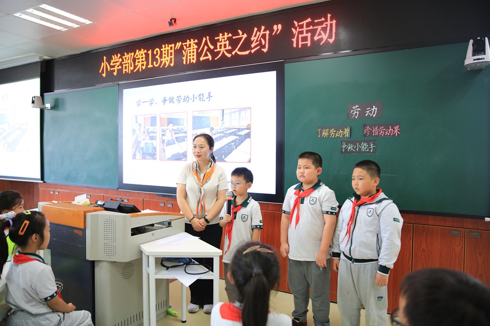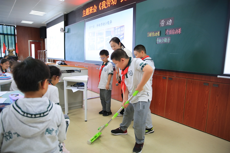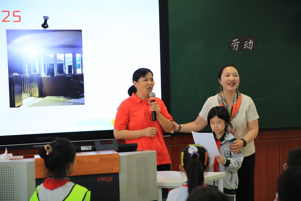 这次活动由何明涛副校长主持,共分为两个环节。首先是三(10)班班主任刘月霞老师进行《我劳动,我快乐》的劳动教育主题班会展示。