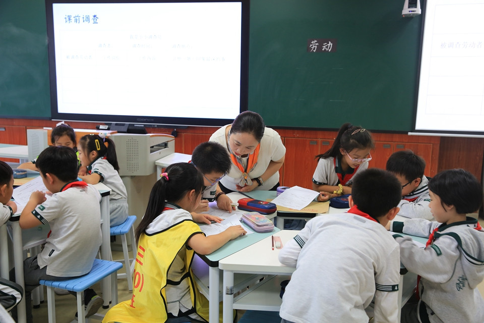 刘老师的班会课以同学们熟悉的生活情境导入,通过课前调查反馈、开展小组讨论、现场采访食堂阿姨以及榜样学习、实践体验等多个环节对学生进行教育引导。同学们在一个个活动步骤中加深了对身边平凡劳动者的了解、明白了要尊重和珍惜他人的劳动果实;在班级劳动小能手的分享中体会到“我劳动,我快乐”,也在心里树立了“我爱劳动我光荣”的正确劳动观。这堂课活动形式丰富,在讨论与体验中促进学生形成良好的劳动习惯和积极的劳动态度,充分发挥主题班会课在德育工作中的重要作用。从学生们的课堂表现和课后收获中,我们坚信劳动教育将会成为校园里一道亮丽的风景线,为学生开启美好人生做好了奠基。